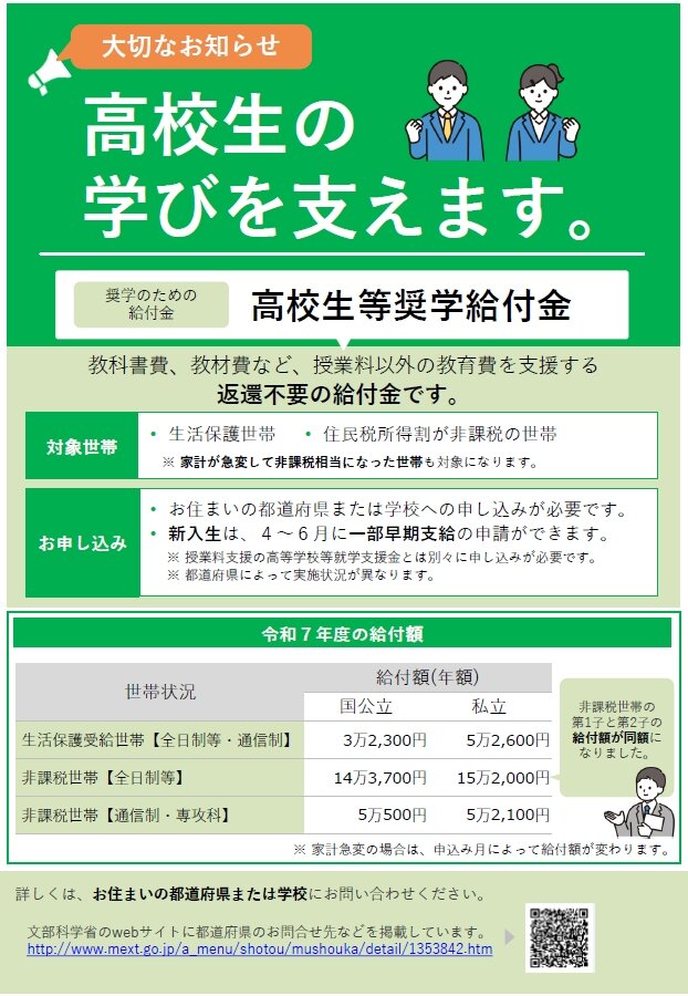 ※授業料の支援制度「就学支援金」とは別の制度です。